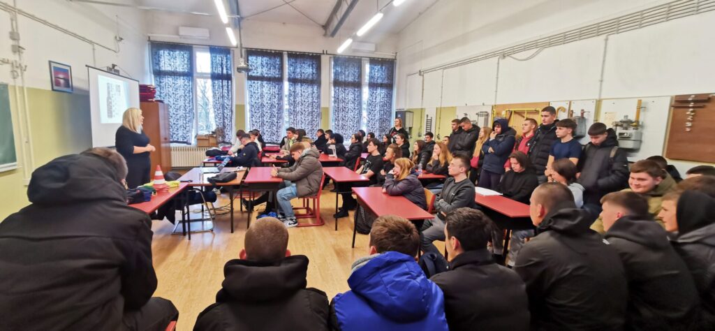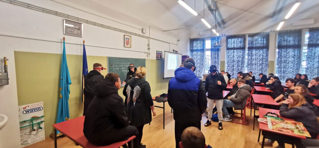 Posebno zanimljiv bio im je interaktivan dio – demonstracija tzv. „pijanih naočala“. Učenici su kroz praktične zadatke – pisanje po ploči i dobacivanje lopticom – mogli osjetiti koliko alkohol utječe na koordinaciju i percepciju te zašto je izuzetno opasan u prometu.