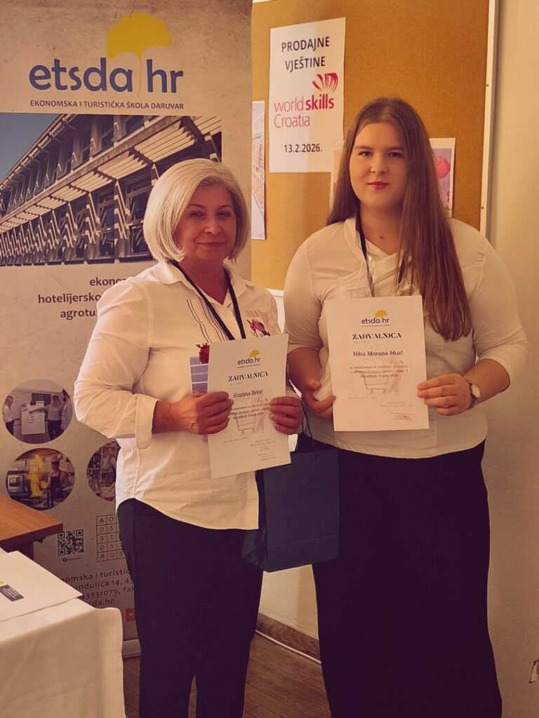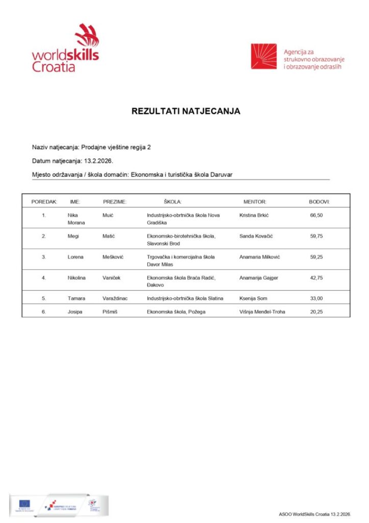 „U petak, 13. veljače 2026. godine u Ekonomskoj i turističkoj školi Daruvar održano je izlučno natjecanje učenika strukovnih škola WorldSkills Croatia 2026 u disciplini Prodajne vještine – regija 2.